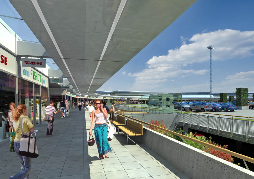 V areálu jsou kromě samotných obchodů navrženy i restaurace, administrativní část, parkoviště. Současně s objektem jsou řešeny sadové a parkové úpravy přilehlých ploch, včetně zpevněných částí.